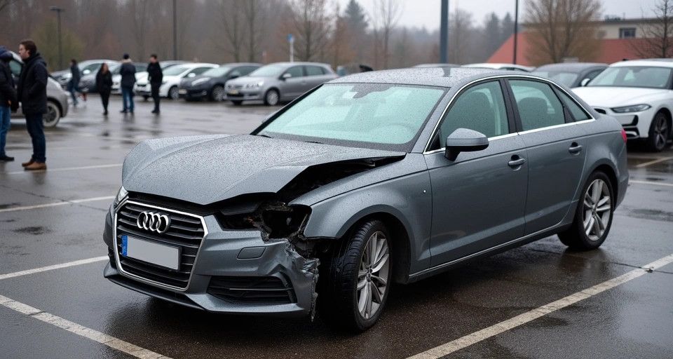 Uszkodzone Audi na parkingu Kaufland. Policja prosi o świadków